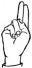 На ћирилици написано ИСИДОРА ЂАКОВАЦ састоји се из 14 слова [?]. Исписано ћириличном једноручном азбуком за глувонеме: